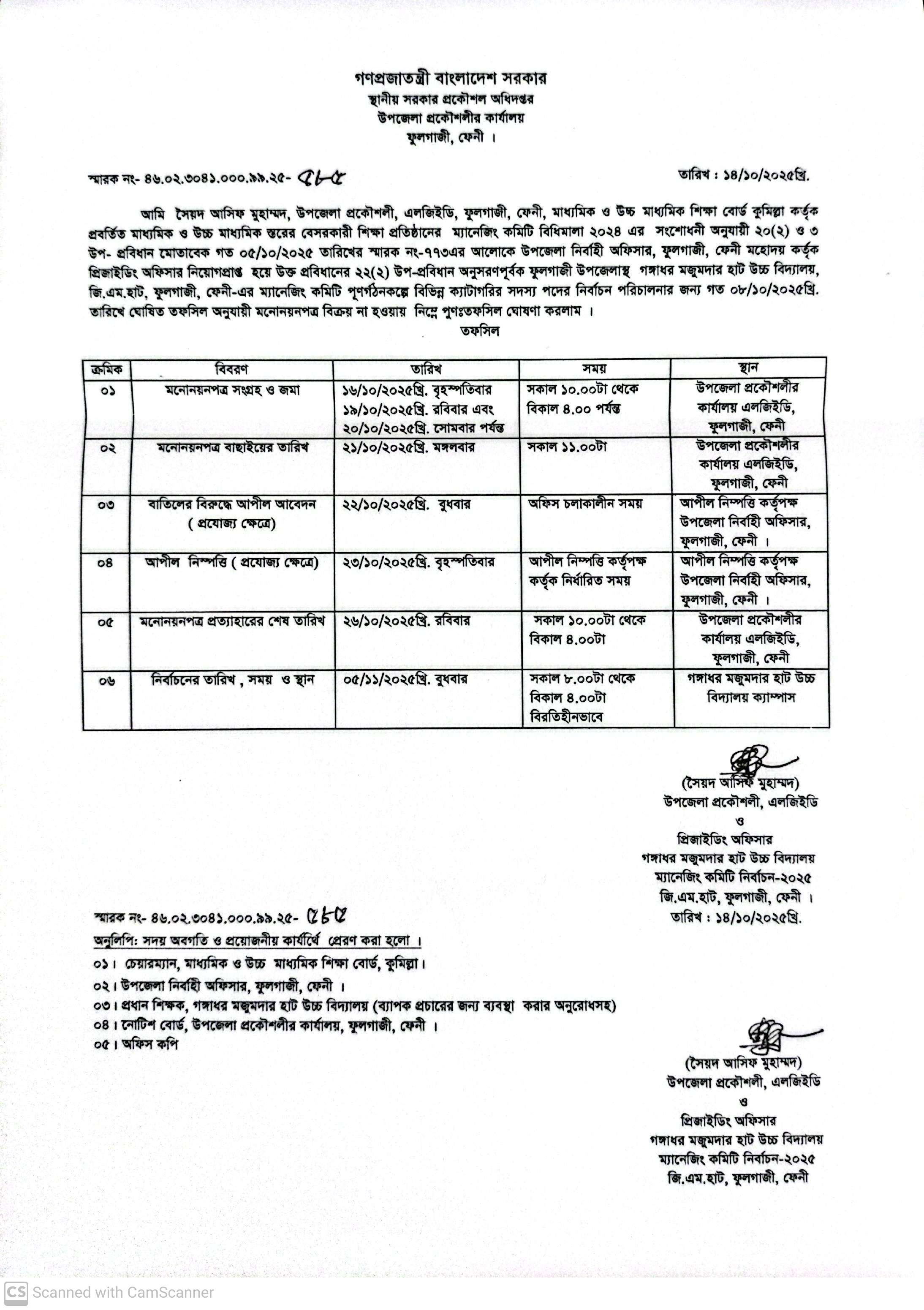 - গঙ্গাধর মজুমদার হাট উচ্চ বিদ্যালয়ের ম্যানেজিং কমিটি নির্বাচনের পুণঃতফসিল ঘোষনা